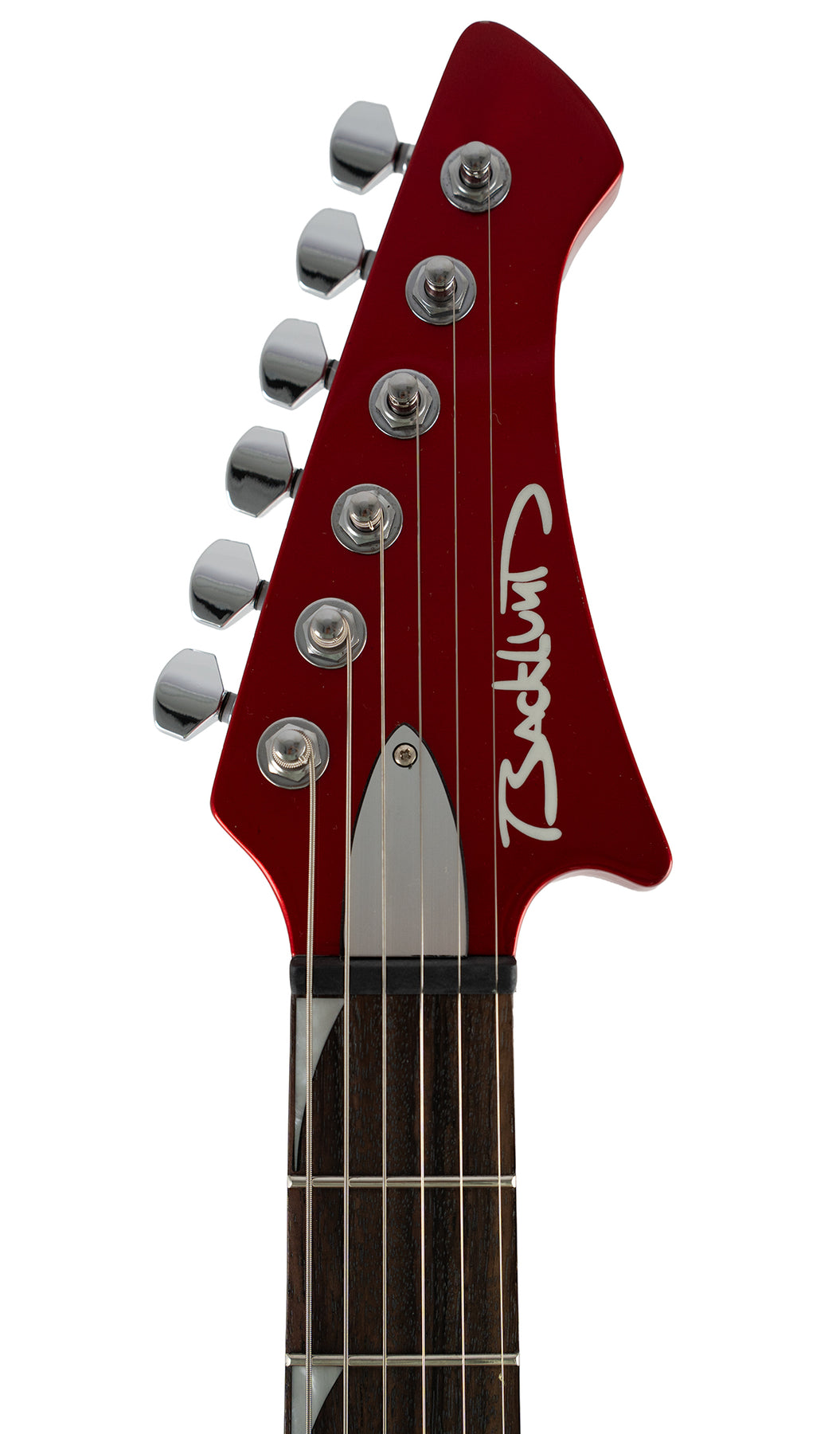 The Backlund Model 800 captures the familiar spirit of classic workhorses like the Strat and Tele, then launches them into uncharted territory. Sculpted lines, sweeping curves, and unmistakable Backlund styling combine with modern performance features including 24 frets, a Les Trem tremolo, and custom-wound pickups.