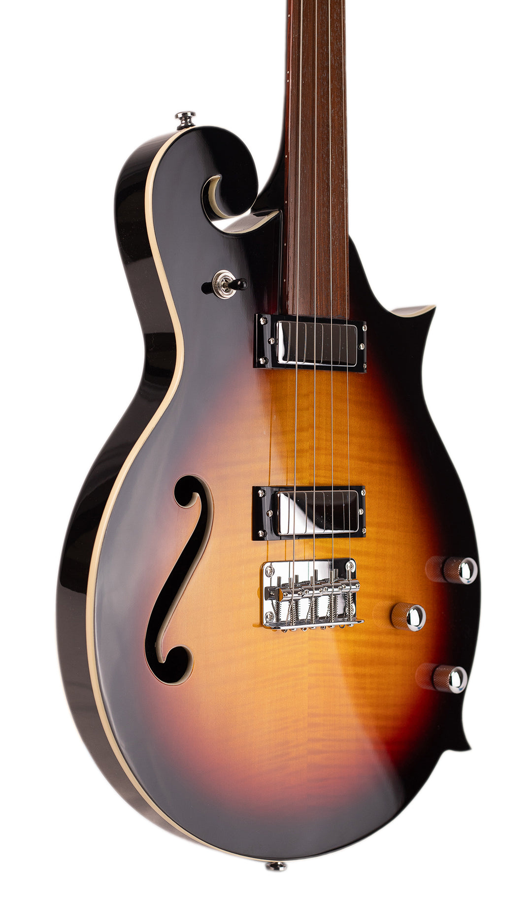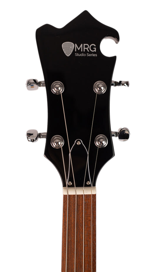 Featuring the same scale length and low CGDA tuning as our Tenor Baritone models, the MRG Cello Guitar offers a similarly rich and expressive sound—enhanced even further by its semi-hollow construction. Custom mini humbuckers provide a warm, full-bodied tone that pairs beautifully with the instrument’s design. And without frets, your glissandos and vibratos will be smoother than ever.