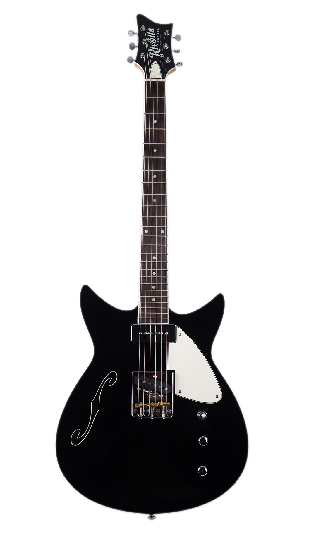 {"id":6935749820501,"title":"Rivolta Duocata Classico Electric Guitar","handle":"rivolta-duocata","description":"\u003ch5\u003eStory\u003c\/h5\u003e\n\u003cdiv class=\"fa-g63wun\"\u003eIntroducing the new Rivolta DUOCATA. Sporting a brand new body silhouette from the mind of Dennis Fano, the DUOCATA is the first non-offset design in the Rivolta line-up.\u003cspan class=\"fa-m06e1l\"\u003e \u003cbr\u003e\u003cbr\u003e\u003c\/span\u003e\n\u003c\/div\u003e\n\u003cdiv class=\"fa-g63wun\"\u003eFeatures include ivory checkerboard binding, tone-chambered ash body with Rivolta F-Hole, set Maple neck construction, our new C++ chunky neck profile, Rosewood fretboard, 25” scale, 24 jumbo frets, T-style bridge and an ultra smooth satin neck finish. Our new proprietary DUOCATA matched pickups (P90 in neck and T-Style in bridge) offer clear, crisp articulation and balanced tone.\u003cbr\u003e\u003cbr\u003e\n\u003c\/div\u003e\n\u003cdiv class=\"fa-g63wun\"\u003eThe Rivolta DUOCATA is everything you’d expect from a classic thinline guitar and more!\u003c\/div\u003e\n\u003cdiv class=\"face1oy4\"\u003e\u003cbr\u003e\u003c\/div\u003e\n\u003ch5\u003eFeatures and Specs\u003c\/h5\u003e\n\u003cdiv style=\"font-size: 0.875rem;\" class=\"fa-g63wun\"\u003e\n\u003cul\u003e\n\u003cli\u003e\n\u003cspan style=\"font-size: 0.875rem;\"\u003eBody Wood: Chambered Ash with \u003c\/span\u003e\u003ci style=\"font-size: 0.875rem;\"\u003eF-Hole\u003c\/i\u003e\u003cbr\u003e\n\u003c\/li\u003e\n\u003cli\u003e\n\u003cspan style=\"font-size: 0.875rem;\"\u003eNeck Wood: Maple\u003c\/span\u003e\u003cbr\u003e\n\u003c\/li\u003e\n\u003cli\u003e\n\u003cspan style=\"font-size: 0.875rem;\"\u003eFretboard Wood: Indian Rosewood\u003c\/span\u003e\u003cbr\u003e\n\u003c\/li\u003e\n\u003cli\u003e\n\u003cspan style=\"font-size: 0.875rem;\"\u003eFrets: 24 x Nickel, Jumbo\u003c\/span\u003e\u003cbr\u003e\n\u003c\/li\u003e\n\u003cli\u003e\n\u003cspan style=\"font-size: 0.875rem;\"\u003eBody Binding: Top and Back - Ivory Checkerboard\u003c\/span\u003e\u003cbr\u003e\n\u003c\/li\u003e\n\u003cli\u003e\n\u003cspan style=\"font-size: 0.875rem;\"\u003eNeck Binding: Ivory\u003c\/span\u003e\u003cbr\u003e\n\u003c\/li\u003e\n\u003cli\u003e\n\u003cspan style=\"font-size: 0.875rem;\"\u003eHeadstock Binding: Ivory\u003c\/span\u003e\u003cbr\u003e\n\u003c\/li\u003e\n\u003cli\u003e\n\u003cspan style=\"font-size: 0.875rem;\"\u003eF-Hole Binding: Ivory\u003c\/span\u003e\u003cbr\u003e\n\u003c\/li\u003e\n\u003cli\u003e\n\u003cspan style=\"font-size: 0.875rem;\"\u003eFretboard Inlay: Pearloid\u003c\/span\u003e\u003cbr\u003e\n\u003c\/li\u003e\n\u003cli\u003e\n\u003cspan style=\"font-size: 0.875rem;\"\u003ePick guard Material: 3-Ply Parchment Ivory\u003c\/span\u003e\u003cbr\u003e\n\u003c\/li\u003e\n\u003cli\u003e\n\u003cspan style=\"font-size: 0.875rem;\"\u003eTruss Rod Cover Material: 3-Ply Parchment Ivory\u003c\/span\u003e\u003cbr\u003e\n\u003c\/li\u003e\n\u003cli\u003e\n\u003cspan style=\"font-size: 0.875rem;\"\u003eControl Cavity Plate material: Parchment Ivory\u003c\/span\u003e\u003cbr\u003e\n\u003c\/li\u003e\n\u003cli\u003e\n\u003cspan style=\"font-size: 0.875rem;\"\u003eHardware: Chrome\u003c\/span\u003e\u003cbr\u003e\n\u003c\/li\u003e\n\u003cli\u003e\n\u003cspan style=\"font-size: 0.875rem;\"\u003eBridge: 'Wilkinson' Chrome Tele bridge with compensated brass saddles, String Thru-body\u003c\/span\u003e\u003cbr\u003e\n\u003c\/li\u003e\n\u003cli\u003e\n\u003cspan style=\"font-size: 0.875rem;\"\u003eKnobs: Chrome Dome Style\u003c\/span\u003e\u003cbr\u003e\n\u003c\/li\u003e\n\u003cli\u003e\n\u003cspan style=\"font-size: 0.875rem;\"\u003ePickups: \u003cbr\u003eNeck - Chrome P90 (\u003c\/span\u003e\u003ci style=\"font-size: 0.875rem;\"\u003e6.8K, Alnico 5 magnets, 43 AWG wire\u003c\/i\u003e\u003cspan style=\"font-size: 0.875rem;\"\u003e)\u003c\/span\u003e\u003cspan style=\"font-size: 0.875rem;\"\u003e \u003cbr\u003eBridge - Tele Single Coil (\u003c\/span\u003e\u003ci style=\"font-size: 0.875rem;\"\u003e8k, Alnico 5 magnets, 43 AWG wire\u003c\/i\u003e\u003cspan style=\"font-size: 0.875rem;\"\u003e)\u003c\/span\u003e\u003cbr\u003e\n\u003c\/li\u003e\n\u003cli\u003e\n\u003cspan style=\"font-size: 0.875rem;\"\u003ePots: 250k\u003c\/span\u003e\u003cbr\u003e\n\u003c\/li\u003e\n\u003cli\u003e\n\u003cspan style=\"font-size: 0.875rem;\"\u003eSwitch: 3-way Toggle\u003c\/span\u003e\u003cbr\u003e\n\u003c\/li\u003e\n\u003cli\u003e\n\u003cspan style=\"font-size: 0.875rem;\"\u003eSwitch Tip: Ivory\u003c\/span\u003e\u003cbr\u003e\n\u003c\/li\u003e\n\u003cli\u003e\n\u003cspan style=\"font-size: 0.875rem;\"\u003eTuners: Chrome\u003c\/span\u003e\u003cbr\u003e\n\u003c\/li\u003e\n\u003cli\u003e\n\u003cspan style=\"font-size: 0.875rem;\"\u003eString Gauge: 10-46\u003c\/span\u003e\u003cbr\u003e\n\u003c\/li\u003e\n\u003c\/ul\u003e\n\u003cp\u003e\u003cstrong\u003e\u003ca href=\"\/products\/rivolta-duocata-lh\"\u003e\u003cspan style=\"font-size: 0.875rem;\"\u003eLEFT-HAND OPTION AVAILABLE!\u003c\/span\u003e\u003c\/a\u003e\u003c\/strong\u003e\u003c\/p\u003e\n\u003c\/div\u003e\n\u003cul\u003e\u003c\/ul\u003e\n\u003ch5\u003eCase Fit\u003c\/h5\u003e\n\u003cul\u003e\n\u003cli\u003e\n\u003cstrong\u003ePremium Soft Case:\u003c\/strong\u003e\u003cem\u003e\u003cstrong\u003e \u003ca href=\"\/products\/rivolta-premium-case\"\u003eOptional Add-On\u003c\/a\u003e\u003c\/strong\u003e\u003c\/em\u003e\n\u003c\/li\u003e\n\u003c\/ul\u003e","published_at":"2024-03-28T12:59:32-04:00","created_at":"2023-06-15T10:04:56-04:00","vendor":"Rivolta","type":"Guitar","tags":["Body: Tone-Chambered","Pickups: P90","Pickups: Single Coil","Right Hand","RWP","spo-cs-disabled","spo-default","spo-disabled","spo-enabled","spo-notify-me-disabled","Stock","Vibrato: No"],"price":109900,"price_min":109900,"price_max":109900,"available":true,"price_varies":false,"compare_at_price":null,"compare_at_price_min":0,"compare_at_price_max":0,"compare_at_price_varies":false,"variants":[{"id":40686546387029,"title":"Ambra Burst","option1":"Ambra