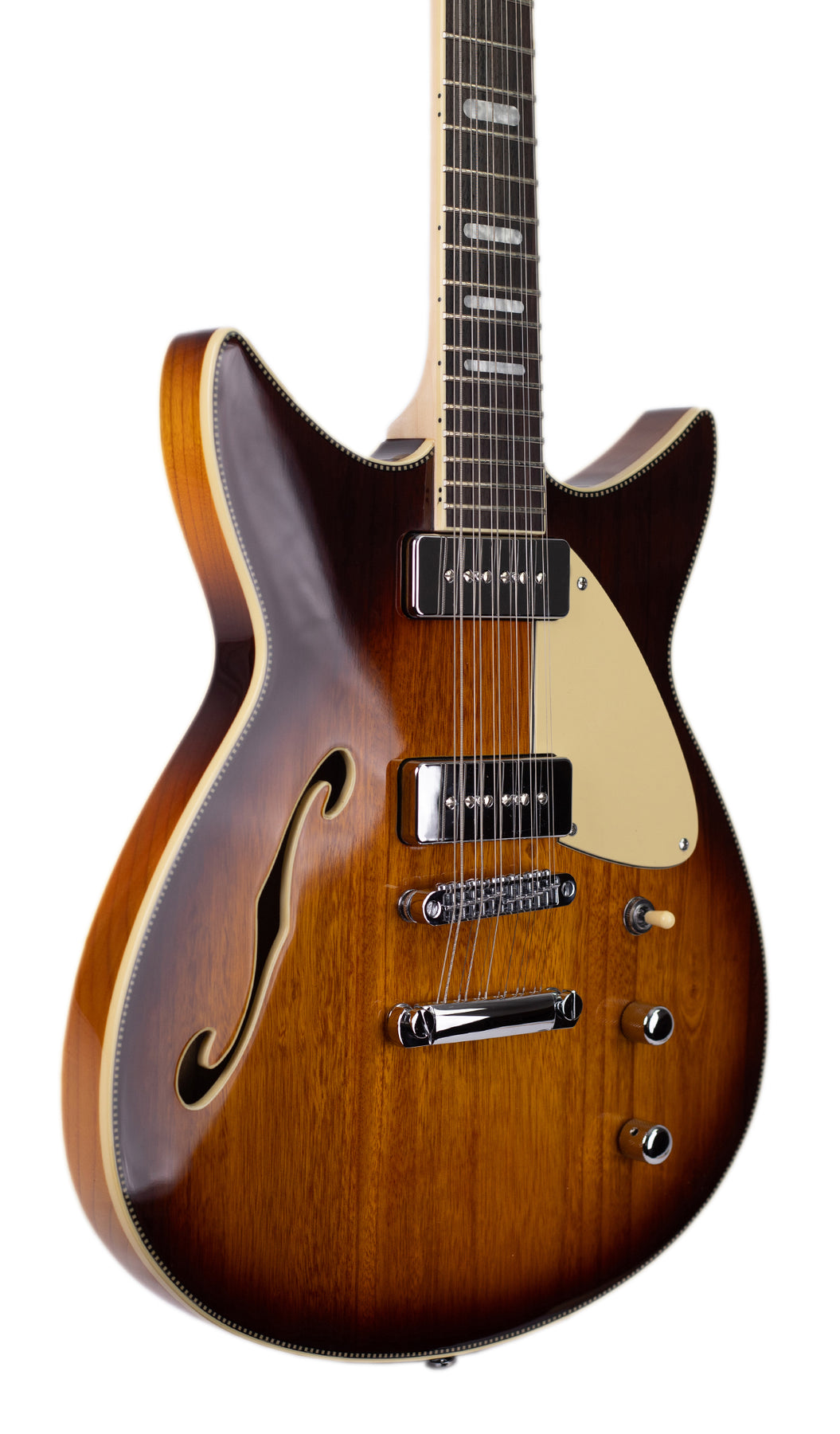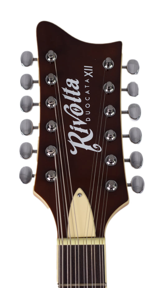 {"id":7009652703317,"title":"Rivolta Duocata 12 Deluxe Electric 12-String Guitar","handle":"rivolta-duocata-12","description":"\u003ch5\u003eStory\u003c\/h5\u003e\n\u003cdiv class=\"fa-g63wun\"\u003e\n\u003cmeta charset=\"utf-8\"\u003e\n\u003cdiv class=\"fa-g63wun\"\u003eThe third model to enter the DUOCATA SERIES doubles up on the strings to add some long-awaited jangle to the Rivolta line. Introducing the DUOCATA 12: the newest twelve-string model from the mind of Dennis Fano. \u003cspan class=\"fa-m06e1l\"\u003e\u003cbr\u003e\u003cbr\u003e\u003c\/span\u003e\n\u003c\/div\u003e\n\u003cdiv class=\"fa-g63wun\"\u003eThis thin-line twelve string guitar features a double bound, semi-hollow Ash body with Rivolta F-Hole, set Maple neck construction, our new C++ chunky neck profile, Rosewood fretboard, 25” scale, 24 jumbo frets, tune-o-matic bridge with individual string saddles and an ultra smooth satin neck finish. Our new proprietary DUOCATA matched pickups (two Custom, chrome-covered P90s) offer clear, crisp articulation and balanced tone.\u003cbr\u003e\u003cbr\u003e\n\u003c\/div\u003e\n\u003cdiv class=\"fa-g63wun\"\u003eThe Rivolta DUOCATA 12 is everything you’re looking for in a 12-string guitar and more! \u003c\/div\u003e\n\u003c\/div\u003e\n\u003cdiv class=\"face1oy4\"\u003e\u003cbr\u003e\u003c\/div\u003e\n\u003ch5\u003eFeatures and Specs\u003c\/h5\u003e\n\u003cul\u003e\n\u003cli\u003eBody Wood: Chambered Ash with F-Hole\u003c\/li\u003e\n\u003cli\u003eNeck Wood: Maple\u003c\/li\u003e\n\u003cli\u003eFretboard Wood: Indian Rosewood\u003c\/li\u003e\n\u003cli\u003eFrets: 24 x Nickel, Jumbo\u003c\/li\u003e\n\u003cli\u003eBody Binding: \u003cmeta charset=\"utf-8\"\u003e \u003cspan\u003e \u003c\/span\u003e\u003cb data-stringify-type=\"bold\"\u003eTop\u003c\/b\u003e\u003cspan\u003e - ivory outer with 'Checkerboard' inner, \u003c\/span\u003e\u003cb data-stringify-type=\"bold\"\u003eBack\u003c\/b\u003e\u003cspan\u003e - Ivory\u003c\/span\u003e\n\u003c\/li\u003e\n\u003cli\u003eNeck Binding: Ivory\u003c\/li\u003e\n\u003cli\u003eHeadstock Binding: Ivory\u003c\/li\u003e\n\u003cli\u003eF-Hole Binding: Ivory\u003c\/li\u003e\n\u003cli\u003eFretboard Inlay: Pearloid\u003c\/li\u003e\n\u003cli\u003ePick guard Material: 3-Ply Parchment Ivory\u003c\/li\u003e\n\u003cli\u003eTruss Rod Cover Material: 3-Ply Parchment Ivory\u003c\/li\u003e\n\u003cli\u003eControl Cavity Plate material: Parchment Ivory\u003c\/li\u003e\n\u003cli\u003eHardware: Chrome\u003c\/li\u003e\n\u003cli\u003eBridge: Tune-o-matic with individual string saddles, Stop Tail\u003c\/li\u003e\n\u003cli\u003eKnobs: Chrome Dome Style\u003c\/li\u003e\n\u003cli\u003ePickups:\u003cbr\u003eNeck - Chrome P90 (\u003cmeta charset=\"utf-8\"\u003e \u003cspan\u003e7.5K, Alnico 5 magnets, 43 AWG wire\u003c\/span\u003e) \u003cbr\u003eBridge - Chrome P90 (\u003cmeta charset=\"utf-8\"\u003e \u003cspan\u003e9.5K, Alnico 5 magnets, 43 AWG wire\u003c\/span\u003e)\u003c\/li\u003e\n\u003c\/ul\u003e\n\u003cul\u003e\n\u003cli\u003ePots: Alpha 500k\u003c\/li\u003e\n\u003cli\u003eSwitch: 3-way Toggle\u003c\/li\u003e\n\u003cli\u003eSwitch Tip: White\u003c\/li\u003e\n\u003cli\u003eTuners: Chrome\u003c\/li\u003e\n\u003cli\u003eString Gauge: 10-46 (12 String)\u003c\/li\u003e\n\u003cli\u003eBody Finish - GLOSS\u003c\/li\u003e\n\u003cli data-stringify-border=\"0\" data-stringify-indent=\"0\"\u003eNeck Finish - SATIN Natural\u003c\/li\u003e\n\u003cli data-stringify-border=\"0\" data-stringify-indent=\"0\"\u003eAverage Weight: 8.0 lbs\u003cspan style=\"text-decoration: underline;\"\u003e\u003cspan style=\"color: #2b00ff;\"\u003e\u003ca href=\"https:\/\/eastwoodguitars.com\/pages\/general-faq#8860902\" style=\"color: #2b00ff;\"\u003e\u003cem\u003e(More Info on Weight)\u003c\/em\u003e\u003c\/a\u003e\u003c\/span\u003e\u003c\/span\u003e\u003cmeta charset=\"utf-8\"\u003e\n\u003c\/li\u003e\n\u003c\/ul\u003e\n\u003cul\u003e\u003c\/ul\u003e\n\u003ch5\u003eCase Fit\u003c\/h5\u003e\n\u003cul\u003e\n\u003cli\u003e\n\u003cstrong\u003ePremium Soft Case:\u003c\/strong\u003e\u003cem\u003e\u003cstrong\u003e Rivolta Premium Soft Case \u003ca href=\"\/products\/rivolta-premium-case\"\u003eOptional Add-On\u003c\/a\u003e\u003c\/strong\u003e\u003c\/em\u003e\n\u003c\/li\u003e\n\u003c\/ul\u003e","published_at":"2025-01-10T09:38:59-05:00","created_at":"2024-04-17T10:02:11-04:00","vendor":"Rivolta","type":"12 String Guitar","tags":["Body: Tone-Chambered","Pickups: P90","Right Hand","RWP","spo-cs-disabled","spo-default","spo-disabled","spo-notify-me-disabled","Stock","Vibrato: No"],"price":79900,"price_min":79900,"price_max":79900,"available":true,"price_varies":false,"compare_at_price":119900,"compare_at_price_min":119900,"compare_at_price_max":119900,"compare_at_price_varies":false,"variants":[{"id":40815543353429,"title":"Ambra Burst","option1":"Ambra Burst","option2":null,"option3":null,"sku":"3351","requires_shipping":true,"taxable":true,"featured_image":{"id":33679358787669,"product_id":7009652703317,"position":1,"created_at":"2025-06-16T15:00:31-04:00","updated_at":"2025-06-16T15:01:03-04:00","alt":"Rivolta Duocata 12 #color_ambra-burst","width":1200,"height":2048,"src":"\/\/eastwoodguitars.com\/cdn\/shop\/files\/duo1_2e32e85a-90c9-4b4d-964a-3acad37c40d9.jpg?v=1750100463","variant_ids":[40815543353429]},"available":true,"name":"Rivolta Duocata 12 Deluxe Electric 12-String Guitar - Ambra Burst","public_title":"Ambra Burst","options":["Ambra Burst"],"price":79900,"weight":3629,"compare_at_price":119900,"inventory_quantity":14,"inventory_management":"shopify","inventory_policy":"deny","barcode":"652186197854","featured_media":{"alt":"Rivolta Duocata 12 #color_ambra-burst","id":25189843337301,"position":1,"preview_image":{"aspect_ratio":0.586,"height":2048,"width":1200,"src":"\/\/eastwoodguitars.com\/cdn\/shop\/files\/duo1_2e32e85a-90c9-4b4d-964a-3acad37c40d9.jpg?v=1750100463"}},"requires_selling_plan":false,"selling_plan_allocations":[],"quantity_rule":{"min":1,"max":null,"increment":1}},{"id":40815